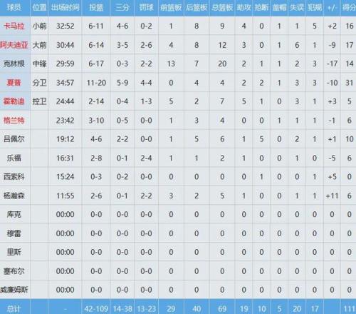 奇才那边,24届榜眼秀萨尔打出生涯之战,出手29次中11球,砍下29分12板3助2断6帽,正负值+16,与克林根(14分20板,正负值-17)对位中更胜一筹。